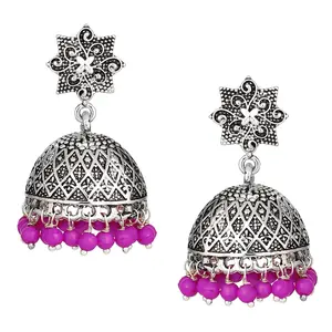 Yellow Chimes Women's Meenakari Jumka...