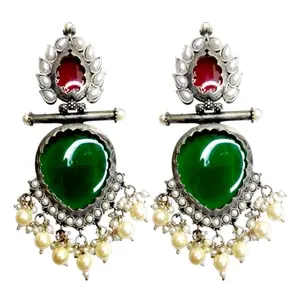 Dye gold ethnic earrings with red...