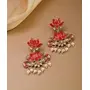 Priyaasi Beautiful Gold & Red Gold-ColorLotus Design Drop Earrings For Women and Girls