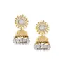 Material: Brass ; Color: Gold and Grey; Package Includes: 1 Jhumka earring set.