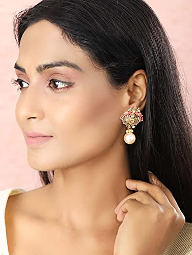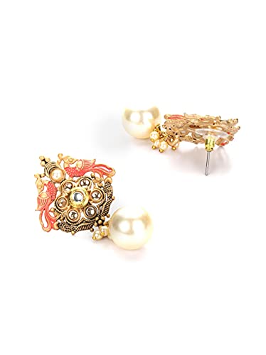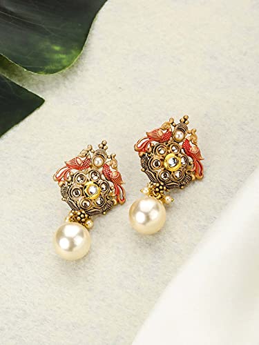 Priyaasi k Kundan Pearls Golden ColorPeacock Drop Earring for Women