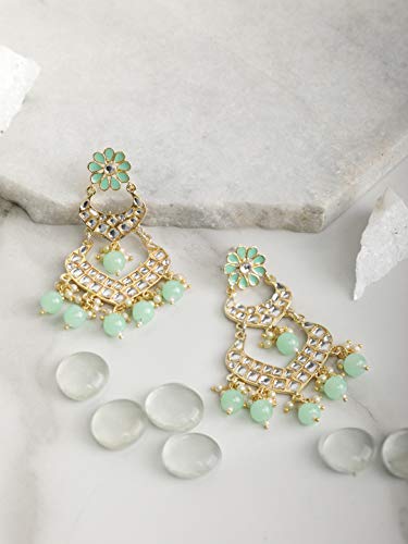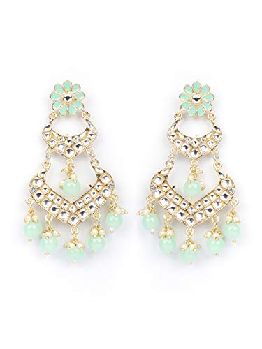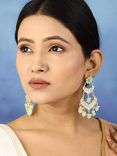 Priyaasi Kundan Golden ColorDrop Earrings for Women and Girls (Turquoise Blue)