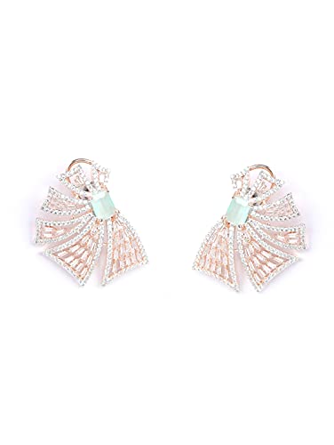 HomeFashionEarringsPriyaasi Mint Green Stone Earrings in Flower-Inspired Design | Rose Gold-Color| Earrings for Women | Stylish & Trendy | Big Size Stud Earrings with Lever Back Closure