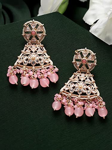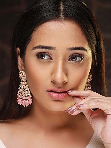 Design & Style: These stunning pink earrings have a studded floral drop design.