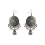 Design & Style: This oxidized maangtikka with earrings has leaf motifs designed in a round figure with metallic bells hanging at the bottom.