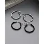 Priyaasi Solid Silver and Black Hoop Earring Set of 2
