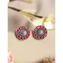 Priyaasi Stylish Magenta Flower Silver Stud Earrings