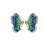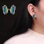 Ruvee Blessings from Heaven Pinion Orange Green Butterfly Gold Plated Luxury Brass Butterfly Earrings for Your Valentine for Women & Girls