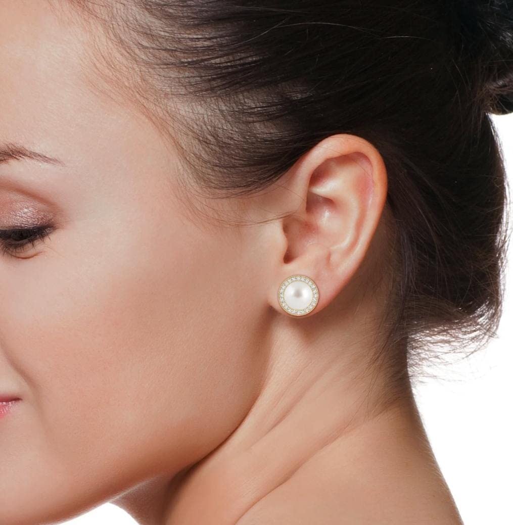Saasvi Jewels 925 Solitaire Collection Sterling Silver and Cubic Zirconia Round Pearl Studds Earrings for Women Girls