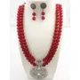Beautiful Handmade Maroon oxidised silver Jewellery Set Glass beads with oxidized silver metal pendant dual strand necklace and matching dangle and drop earring jewelry set for women. Backside matching adjustable dori type