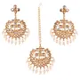 HomeFashionEarringsTouchstone Contemporary Gold Tone Kundan Collection Indian Kundan Polki Look Faux Pearls Hangings Long Designer Earrings and Mangtika for Women