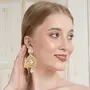Touchstone Indian Bollywood Green Curved Fish Theme Designer Jewelry Earrings In Antique Gold Tone For Women