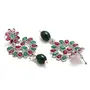 HomeFashionEarringsWomen Fashion Jewellery Antique Oxidised Silver Plated Flower Shaped Red Green American Diamond Studded Five Layered Light Weight Necklace With Earrings Jewellery (Style 1)