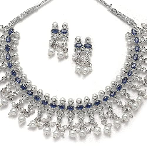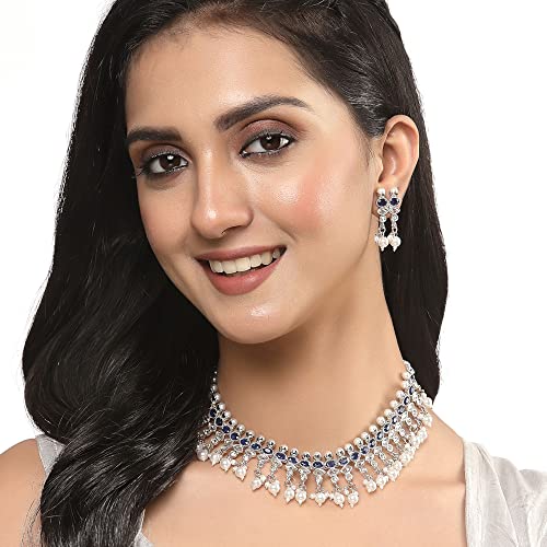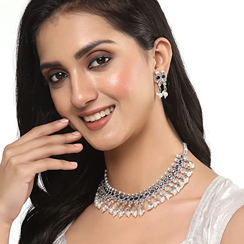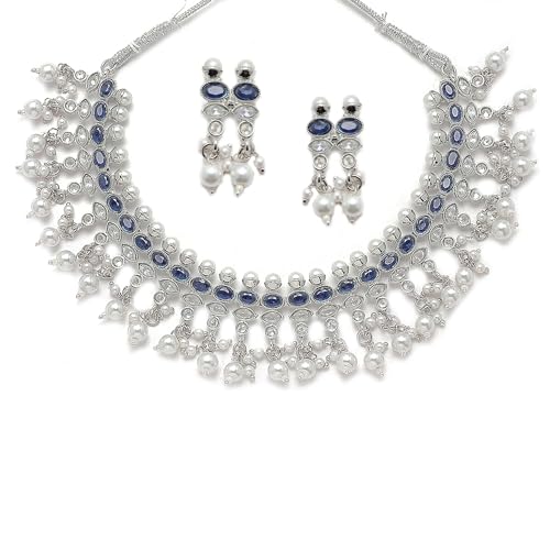 Sales package- 1N NECKLACE 2N Earring Stylish And Elegant American Diamond Antique Oxidised Silver Plated Necklace with matching Earrings From The House Of Zeneme. Material: Copper |Plating: Silver-plated | Stone type: Artificial Stones and Beads High-Quality American Diamonds & superior-quality Oxidised Silver Plating For Long Lasting Finish with Hand Crafted Design For Contemporary Stylish Trendy & Stunning Look. Unique-shaped & Matching sets especially offered to our prestigious shoppers. LUXURY GIFTING IDEA : Give a meaningful and luxurious gift with Zeneme Jewellery. A favourite gift choice each Zeneme jewellery for women comes with a Signature gift box and makes excellent gift choice for birthdays wedding anniversaries Valentine's Day Mother's Day Diwali Christmas and all your special occasions. Usage : Daily Wear Festival Wedding and Occasions