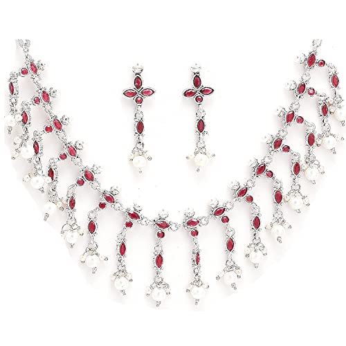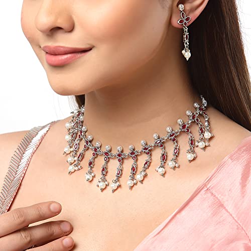 Sales package- 1N NECKLACE 2N Earring Stylish And Elegant American Diamond Antique Oxidised Silver Plated Necklace with matching Earrings From The House Of Zeneme. Material: Copper |Plating: Silver-plated | Stone type: Artificial Stones and Beads High-Quality American Diamonds & superior-quality Oxidised Silver Plating For Long Lasting Finish with Hand Crafted Design For Contemporary Stylish Trendy & Stunning Look. Unique-shaped & Matching sets especially offered to our prestigious shoppers. LUXURY GIFTING IDEA : Give a meaningful and luxurious gift with Zeneme Jewellery. A favourite gift choice each Zeneme jewellery for women comes with a Signature gift box and makes excellent gift choice for birthdays wedding anniversaries Valentine's Day Mother's Day Diwali Christmas and all your special occasions. Usage : Daily Wear Festival Wedding and Occasions