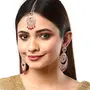 Women Stylish Shiny Round Design Rose Gold-Plated Maang Tikka Earring Set Jewellery