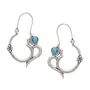 Women's Brass Moksha Om Design Hoop Earrings With Turquoise Blue Stone(Free Size)(Silver)