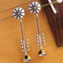 Women's Brass Oxidised Boho/Tribal Style Long Drop Earrings(Free Size)(Silver)