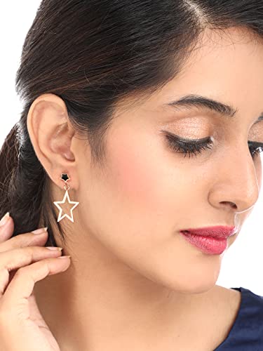 Stylish Latest Fashion Design in Stainless steel Drop earrings. Rose Gold plated trendy Star earrings design from Your Own Yellow Chimes. These designer earrings will complement any Occasion Formal/ Casual/ Party Wear. Beautiful Looks at One Glance- with Intricate High Polish creates Glamorous Reflections and adds Luxurious Looks.