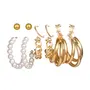 Women's Hoop Earrings Set of 6 Pairs Gold Plated Pearl Contemporary Hoop & Stud Earrings Set Gold Medium