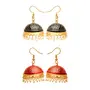 Women's Meenakari Jumka Earrings with Ethnic Design Gold Plated Traditional Beads Combo of 2 pair Black, Red One Size