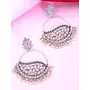 Yellow Chimes Women's Chandbali Earrings German Oxidised Stone Studded Chand bali Earrings White Medium
