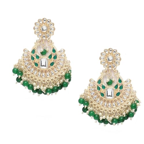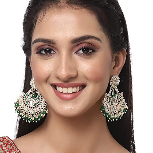 Zeneme Gold-ColorKundan studded Crescent Shaped Vilandi Style Chandbali Earrings for Girls and Women