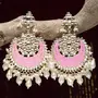 Zeneme Gold-Plated Kundan studded Crescent Shaped Chandbali Earrings for Girls and Women
