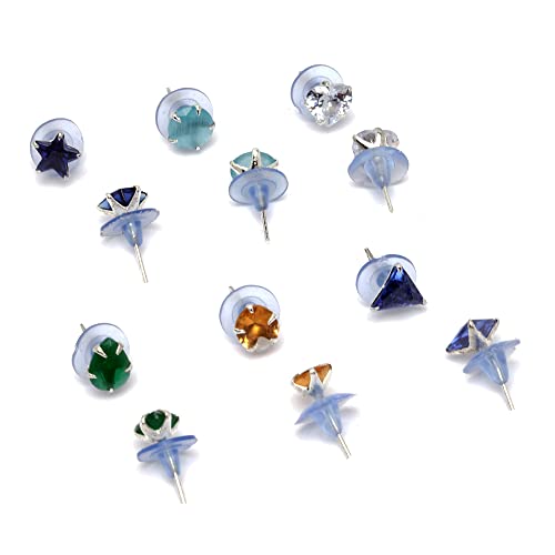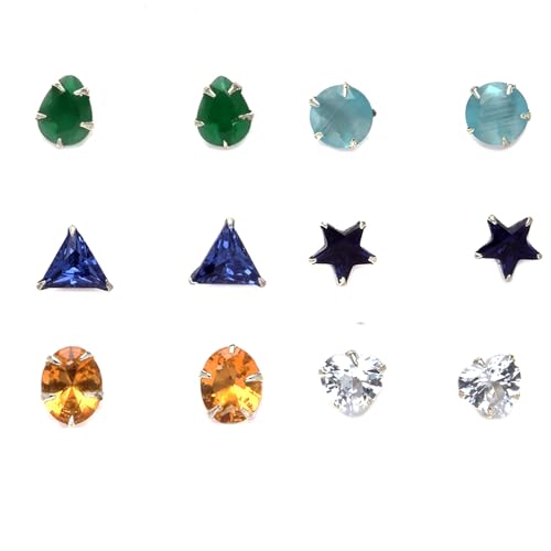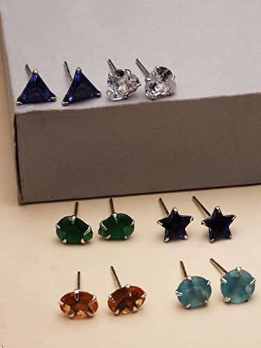 ZENEME Women's Rhodium-Plated Silver Toned -Colour American Diamond Studded Geometric Shape Stud Earrings (Combo Of 6) Small Multi
