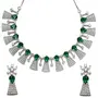 ZENEME Women's Rhodium-Plated Silver Toned Teardrop Shaped American Diamond Studded Necklace With Earrings Jewellery Set