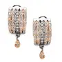 HomeFashionEarringsZENEME Women's Rose Gold-Plated Gunmetal Toned White American Diamond Studded Teardrop Shaped Stud Earrings Medium Rose Gold & White