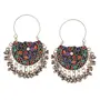 Stunning ethnic dangler Afghani hook chandbali earrings in silver tone.Floral design with filigree work and studded with multi color rhinestones gives a traditional touch to the earrings.Silver beads dangle to create a striking look.Perfect with ethnic & traditional wear. Can also be a perfect gifting option for friends and dear ones.Earrings Length=3'' earrings Width=1.5''