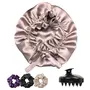 Atrube Silk Satin Hair Reversible with Adjustable tie Band satin bonnet wrap Satin Wrap Silk Bonnet Hair with Scalp Massager Shampoo Brush and scrunchies (Beige)