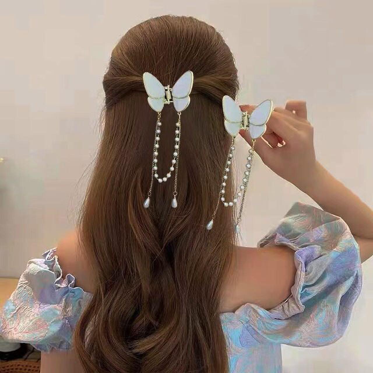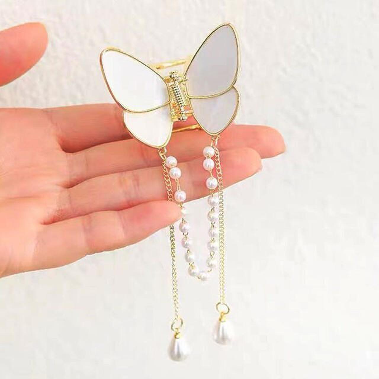 Blubby White Butterfly Metal Hair Clutcher Hair Claw Clips for Women Pack of 1