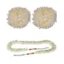 By Zintalic It is a beautiful hair gajra rubberband specially made for Indian weddings. It is used for weddings Bharatanatyam dance a seasonal occasion like Pongal Diwali. Girls can tie it around their ponytail braids and buns also. Its gives a attractive look and go with long and shorts hairs. Gajra Adds a charming look when worn on a bun. It looks best when worn with a traditional Indian saree. This is a reusable product. It is the best gift for every woman and girls The simple single stranded bun hairstyle with flower gajra is a classic. It never goes out of fashion and can add a fresh look to a bride.. Given its simplicity and elegance you can flaunt this gajra style on any given day. Bride with floral decorations for Haldi mehndi or sangeet ceremony part of pre-wedding rituals in south Indian.