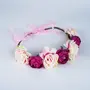 SYGA Women Silk Rose Floral Crown Hair Wreath Leave Flower Headband Tiara with Adjustable Ribbon for Girls Pack of 1 - Cream Pink