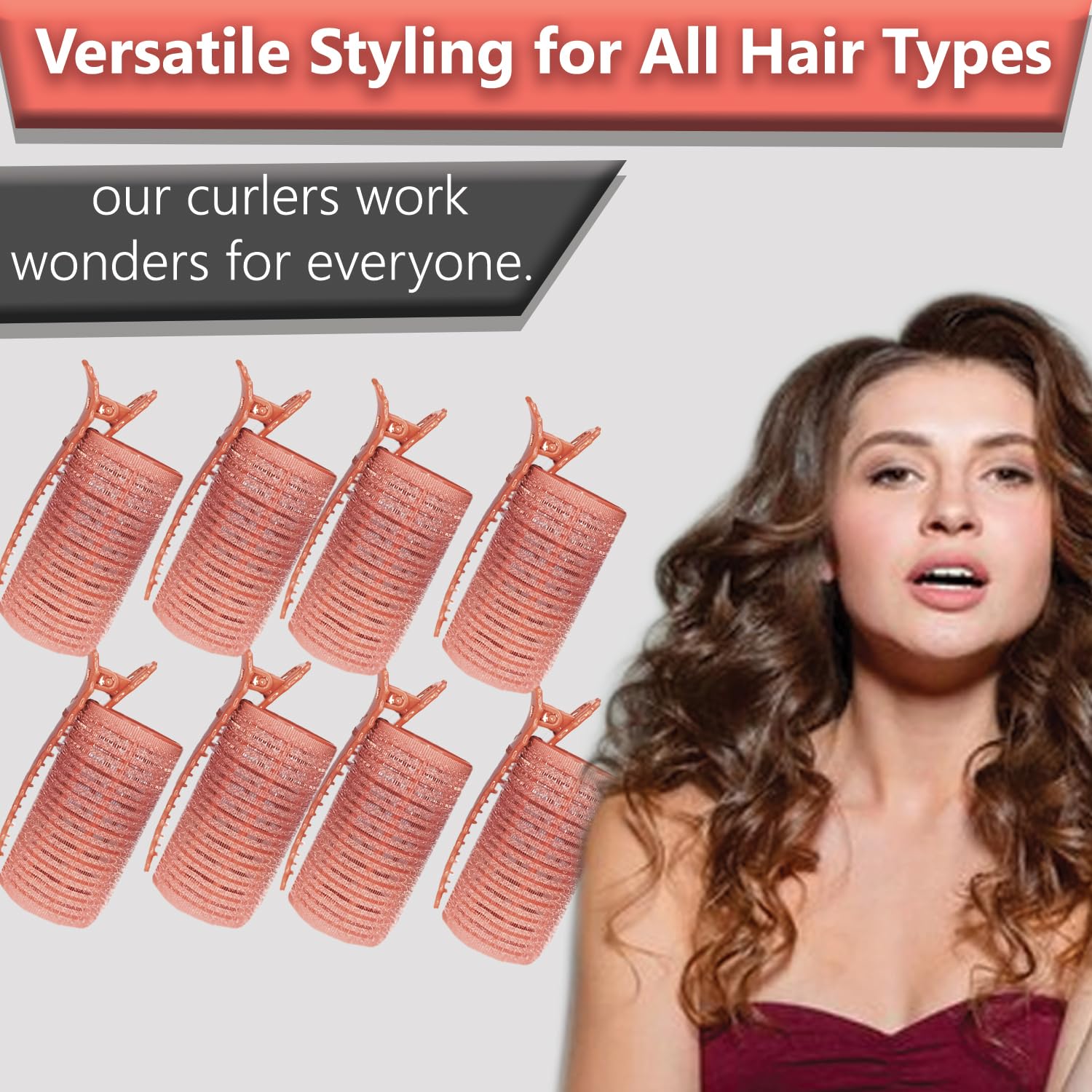 TEMPERIA (8 pcs) Heatless Hair Curler Roller with Clips for Women Premium Velcro Rollers for Curling Hair Lightweight and Portable No Heat Hair Curl Tools (Random Colors)