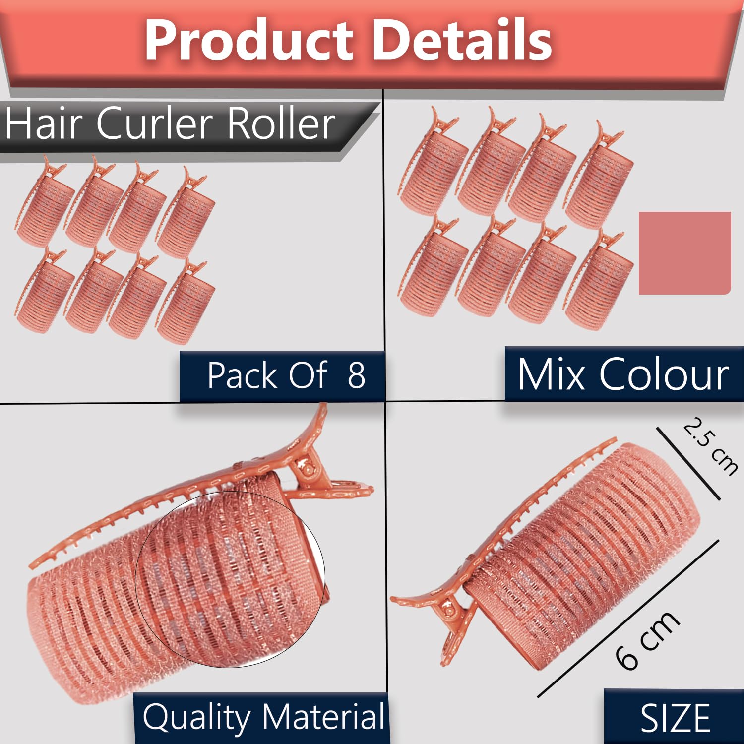 HomeFashionHair AccessoriesTEMPERIA (8 pcs) Heatless Hair Curler Roller with Clips for Women Premium Velcro Rollers for Curling Hair Lightweight and Portable No Heat Hair Curl Tools (Random Colors)