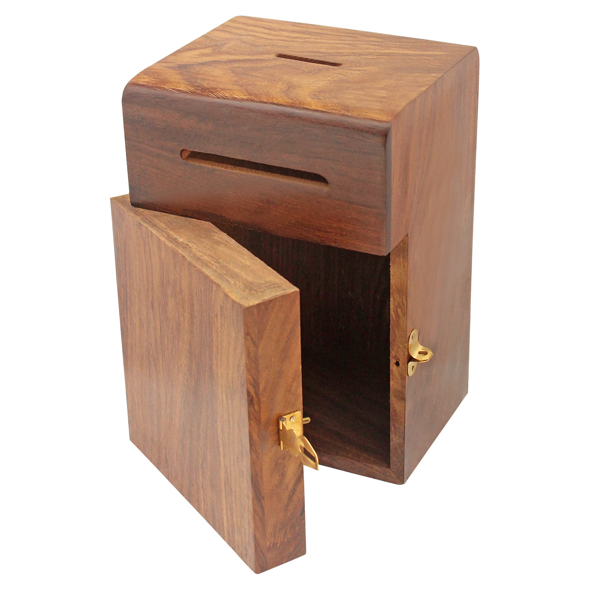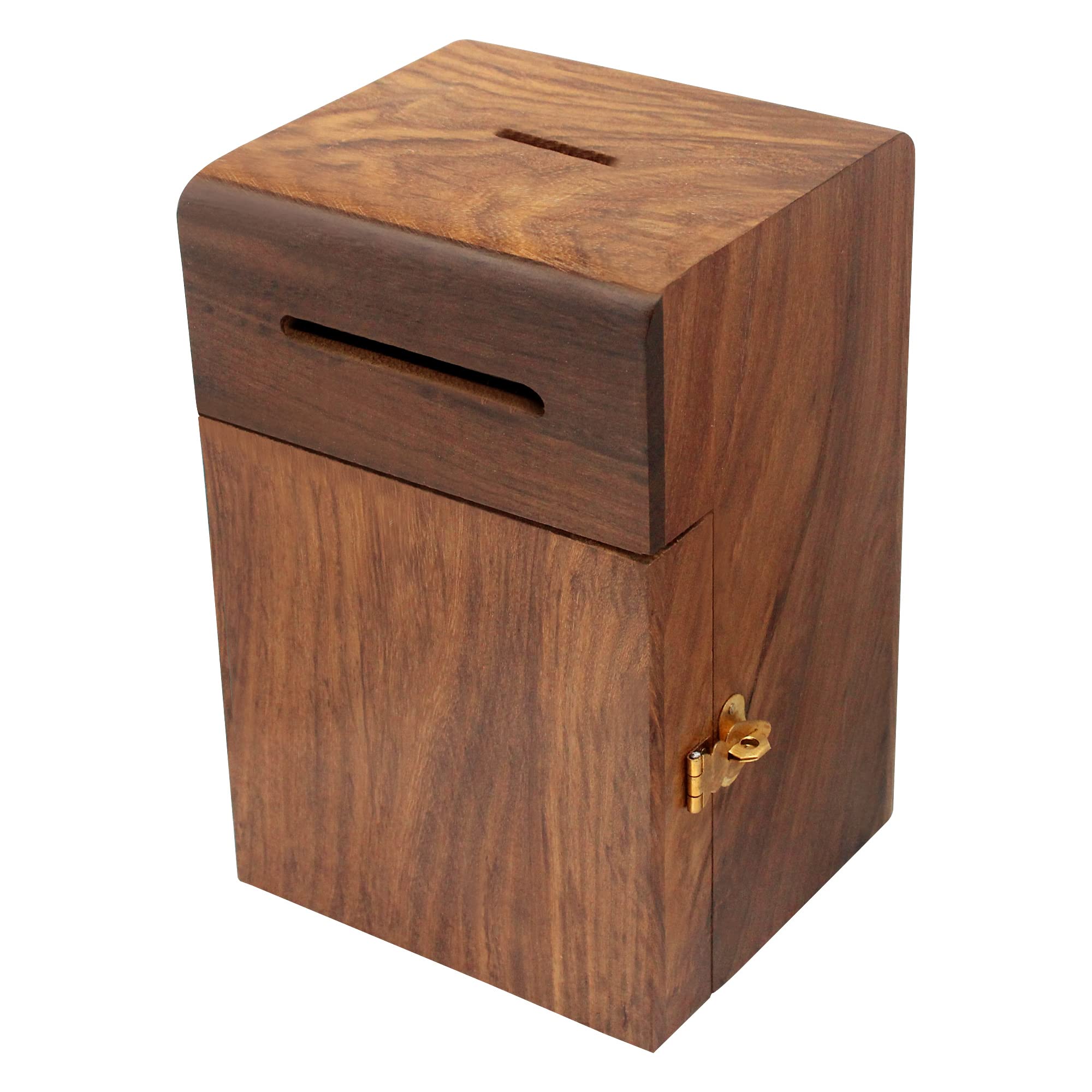 BIJNOR - METAL INLAY IN WOOD Handmade Wood Money Bank - Coin Saving Box - Piggy Bank - Gifts For Kids Girls Boys & Adults Antique Brown