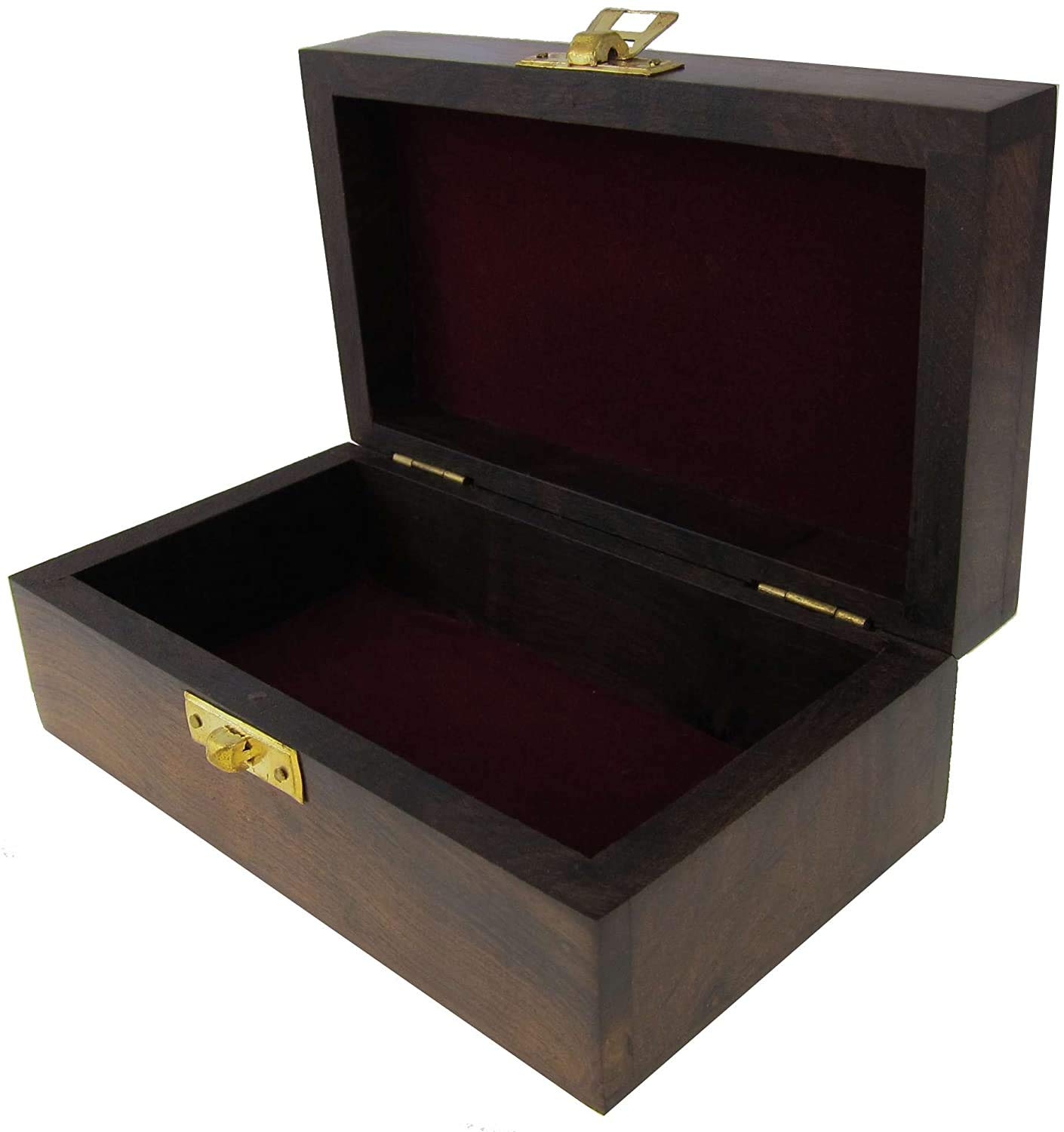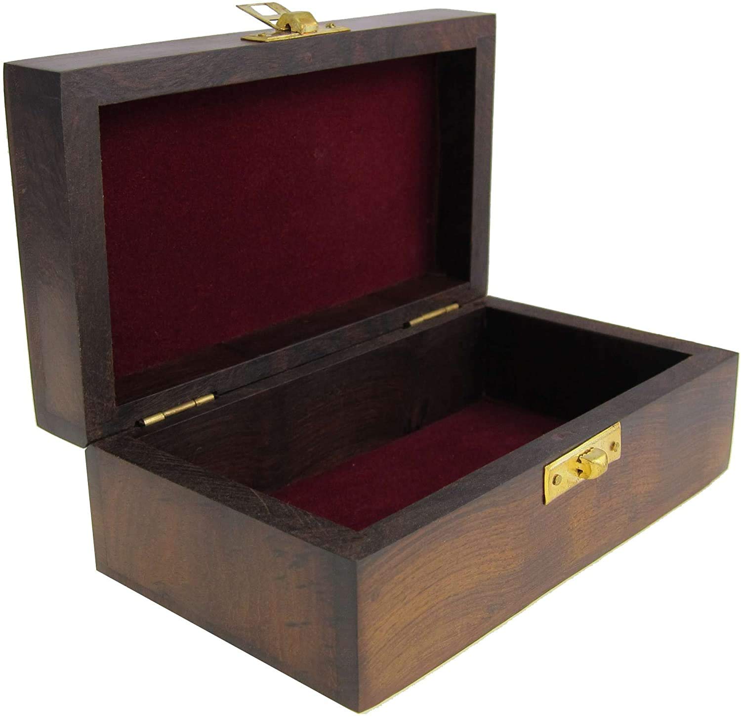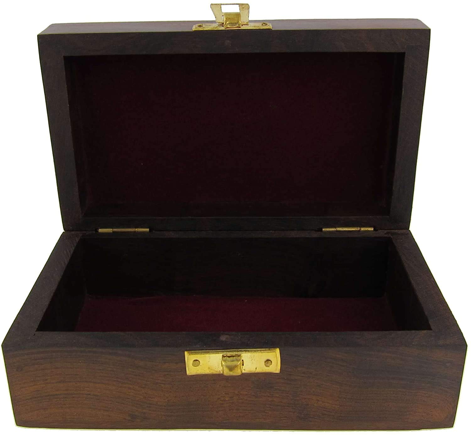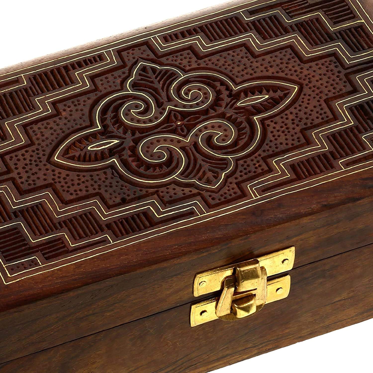 HomeFashionBoxes & HoldersBIJNOR - METAL INLAY IN WOOD Handmade Wooden Jewellery Box for Women Jewel Organizer Hand Carved Carvings Gift Items - 6x3.3x2.25 Inch