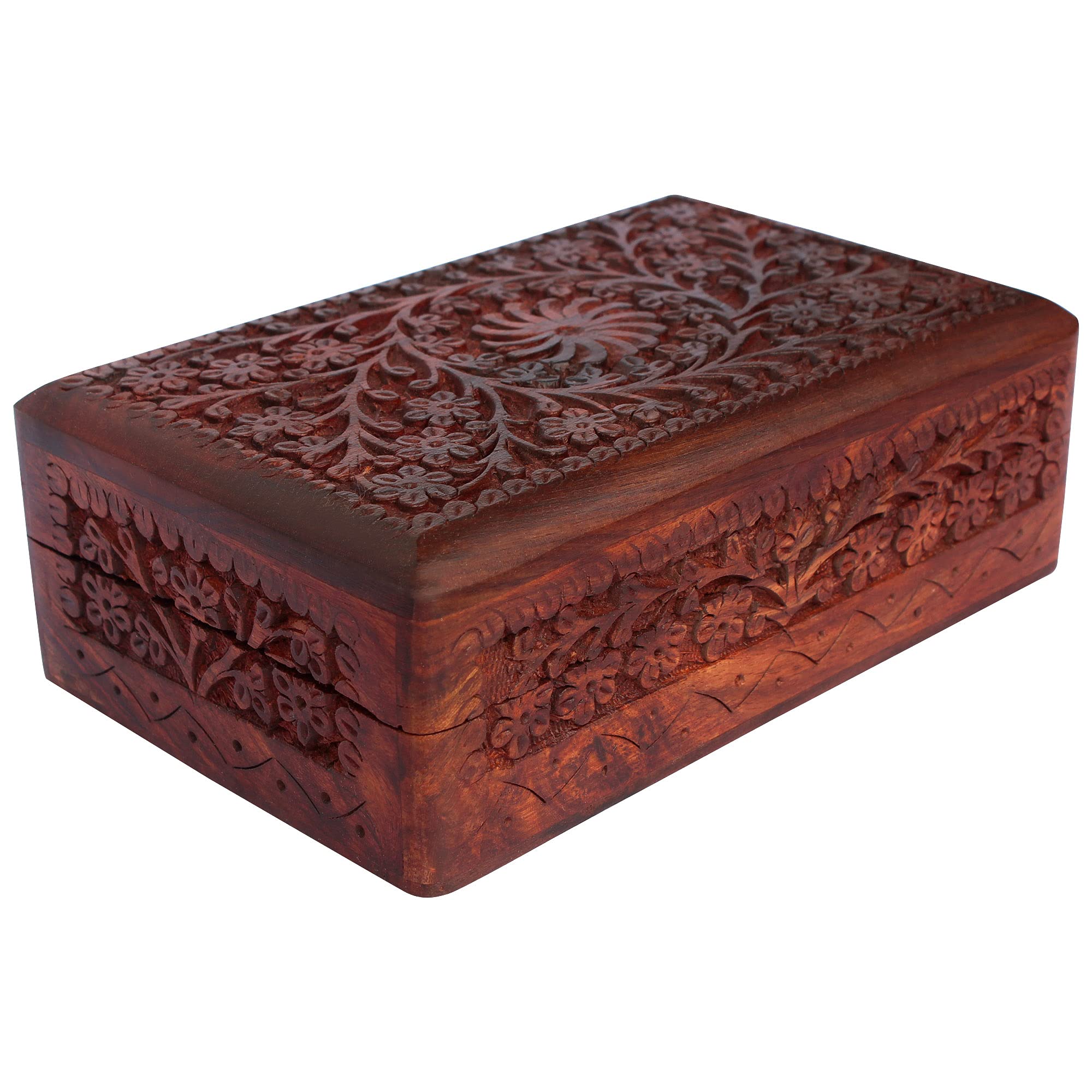 Protect and preserve your valuables with this handcrafted wooden jewelry box. You always want to keep your best valuables precious jewelry safely. This wooden jewelry box is ideal for organizing your jewellery collection. This classical wooden jewelry storage case has been built from real wood and polished gold hardware. A stylish way to keep your jewelry organized. This wooden jewelry box has a curved traditional design rich brown finish.