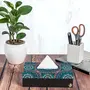 BIJNOR - METAL INLAY IN WOOD Tissue Box Holder | Blue Mandala Design with Black Border | Size 9" x 5" x 2.75" Tissue Box Holder for Car and Home | Refillable Car Tissue Box Cover
