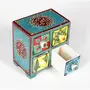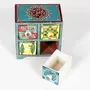 Rajasthani hand painted decorative 4 drawer wooden chest with ceramic drawers made in india by artisans using traditional ways designer touch with modern look elegent handmade product if this is looking old and used please do not place order.