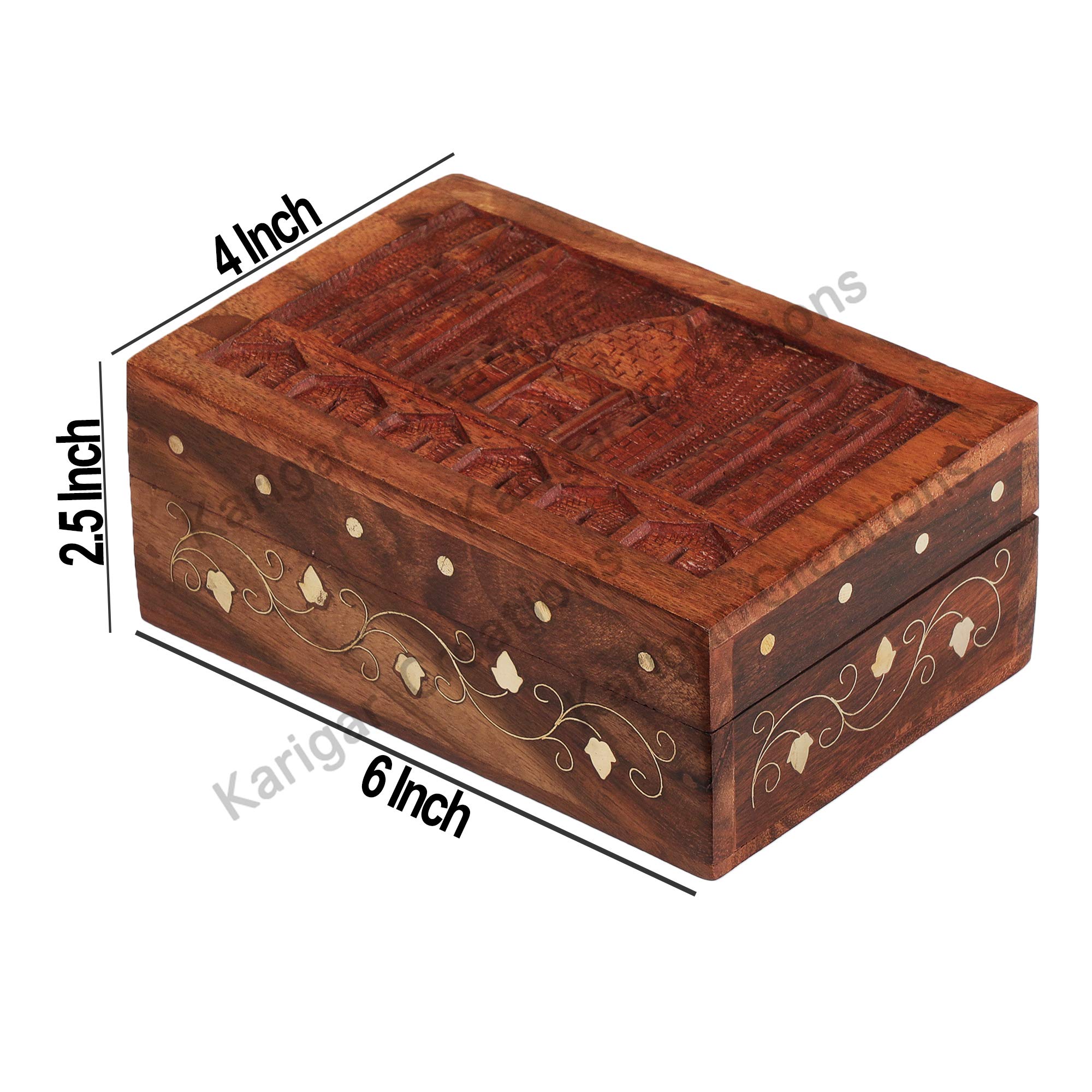 HomeFashionBoxes & HoldersKarigar Creations Wooden Jewellery Boxes Storage Box Organizer With Tajmahal Design Gift Box for Women Necklace Earring Set Bangles Churi Holder Gift Size 6 x 4 x 2.5 inch
