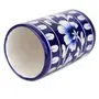 KHURJA POTTERY Ceramic Toothbrush Holder [White w/Blue Floral] Ceramic Toothbrush Holder Stand for Bathroom Sinks Toothbrush Cup Holder 4 inches
