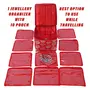 Kuber Industries Brocade Jewellery kit with 10 Pouch|Solid Print With Waterproof Outer Material|10 Pouches & Zipper Closure|Size 19 x 18 x 13 Pack of 1 (Red)