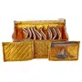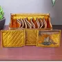 10 Pouches for keeg your Jewellery safe and for best storage comes with one box . It's a best option to use while travelling and it will help you to keep your heavy jewelary in a separate cover from other items in your luggage .Hand made cover from Cotton cloth. Color- Gold .Dimension-26 x 12 x 15 Cm .Long life jewelery kit for organizing your costly and favorite jewelary