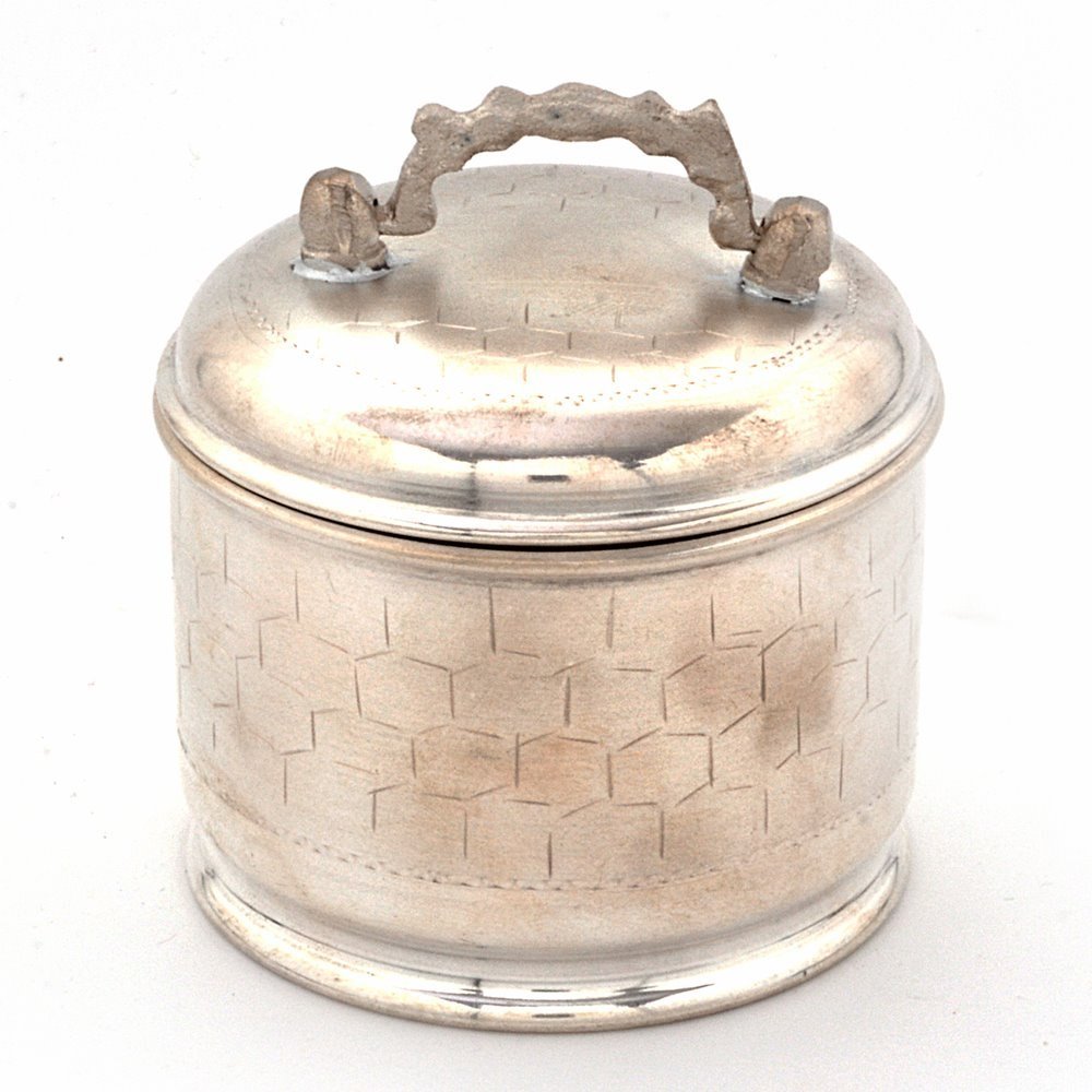 This handcrafted silver polished mouth freshener box is made of pure brass. There is a lid to keep it closed after use.made up of pure brass the box exhibits luxurious texture and has a beautiful carved handle on upper side of the lid which gives it a royal touch and finish.