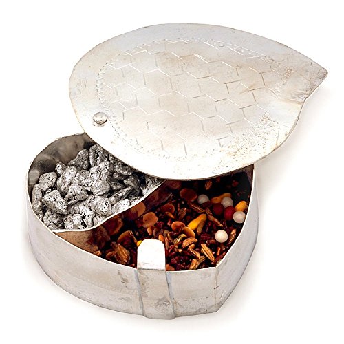This silver handcrafted container made up of pure brass is delightfully carved on the top of the closable leaf shaped lid with beautiful carving over it. The gift piece has been prepared by the master artisans of jaipur.