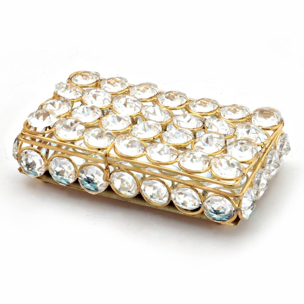 The beautiful handcrafted box is made up of brass and is decorated with crystal all over. Its is a multi utility item which can be used to keep your little thing like cards jewellery or any other item. The gift piece has been prepared by the master artisans of jaipur.